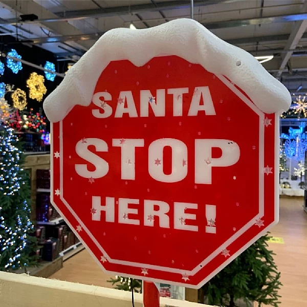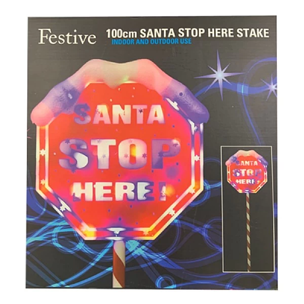 110cm Santa Stop Here LED Sign With Multicoloured Lights