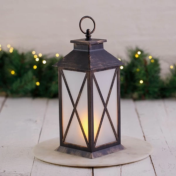- 1 x Bronze Fire-effect LED Candle Lantern