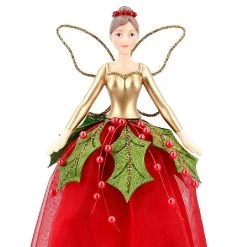 Gisela Graham Large Silver Glitter Fabric & Resin Tree Top Fairy