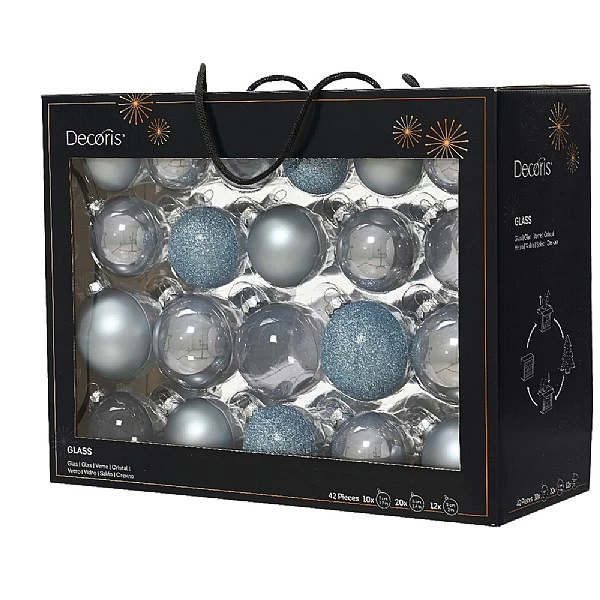Decoris Box Of 42 Hazy Blue Glass Baubles