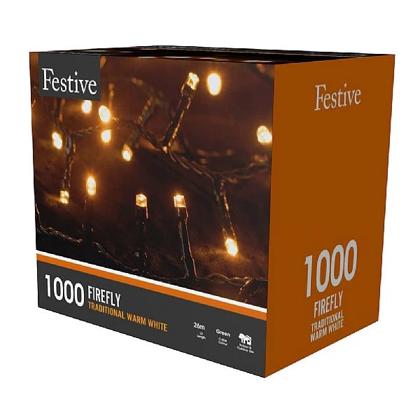 - 1 x Festive 1000 Traditional Firefly Lights Warm White