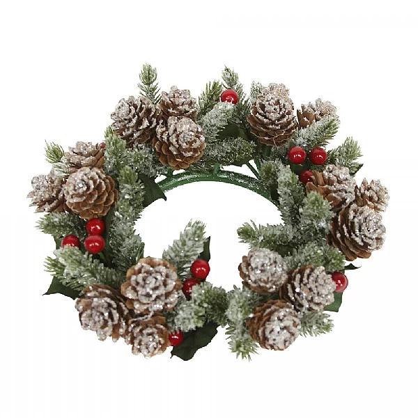 - 1 x Gisela Graham Frosted Fir & Red Berry Candle Ring Large