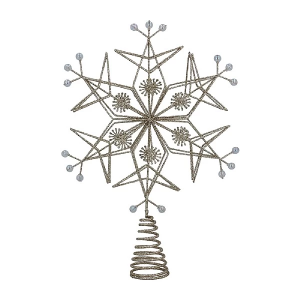 - This star tree topper fairy is incredibly striking with its wire snowflake design finished in gold glitter and embellished with pearls