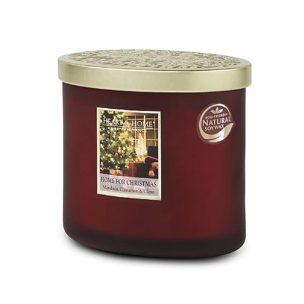 - ‘Home for Christmas’ Heart and Home Twin Wick Ellipse candle with a unique fragrance of mandarin, cinnamon, and clove