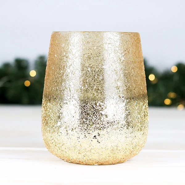- Fill with a tealight candle or mini LED fairy lights to create a lovely play of light on the crackled gold design