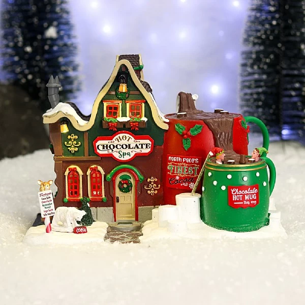 - The Hot Chocolate Spa illuminated ornament from Lemax is part of the Santas Wonderland collection