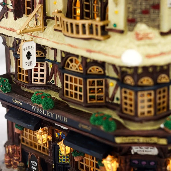 Why we love it:This welcoming Lemax Wesley Pub will make a great addition to your village scene, and adds a touch of the British village to yoru lemax collectionMade from realistic porcelain with intricate detail and light up windows that create a soft warm glow in your homeBattery operated – so you can position it wherever you desire – within a village scene, or stand-alone on a mantlepiece, dining table, or even on a wallPart of the Lemax Caddington Village Collection