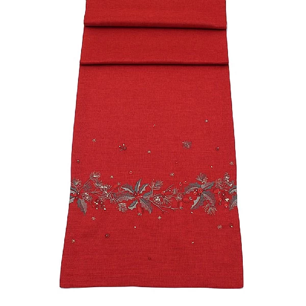 - Adds a big bright burst of berry red to your table and a jolly holly design