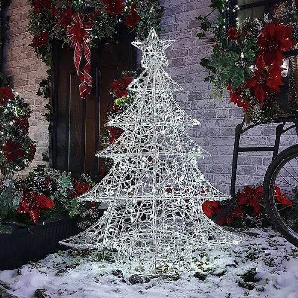 - Featuring 120 bright white LEDs with a mix of static and flashing effects, this Acrylic Christmas tree will look simply dazzling illuminated in your garden