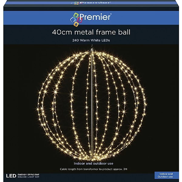 Why We Love It:This illuminated sphere will create a stunning floating ball display in a tree or by a front doorFeatures 230 warm white LEDs for a dazzling displayEnergy efficient LEDs3m cable from transformer to ballSuitable for both indoor and outdoor use