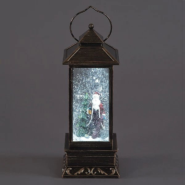 - A modern update on the snow globe idea, it contains a Santa figure inside a water filled lantern which is battery powered