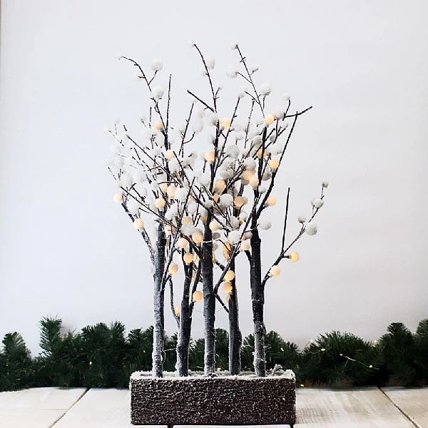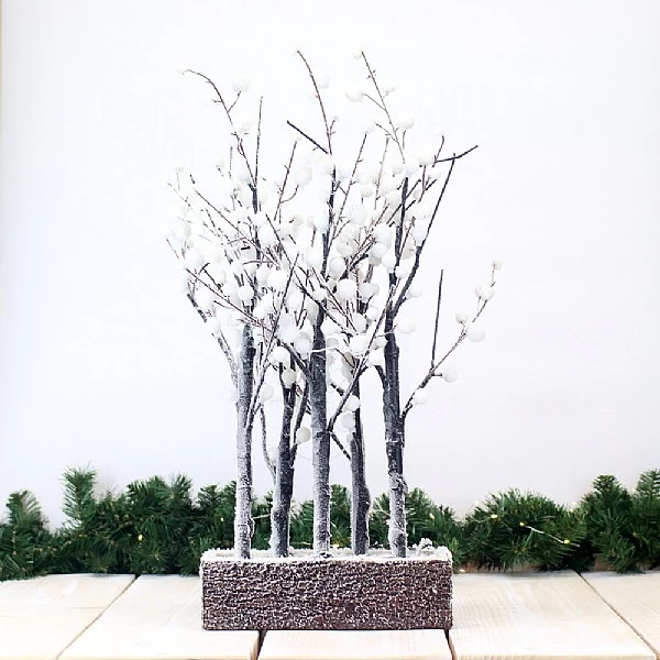 - Gorgeous ornament of 5 snowy white branches in a wooden base