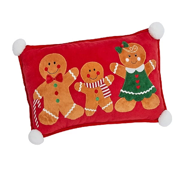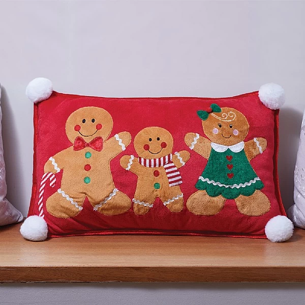 - Get ready to curl up by the fireplace with this gingerbread family cushion!