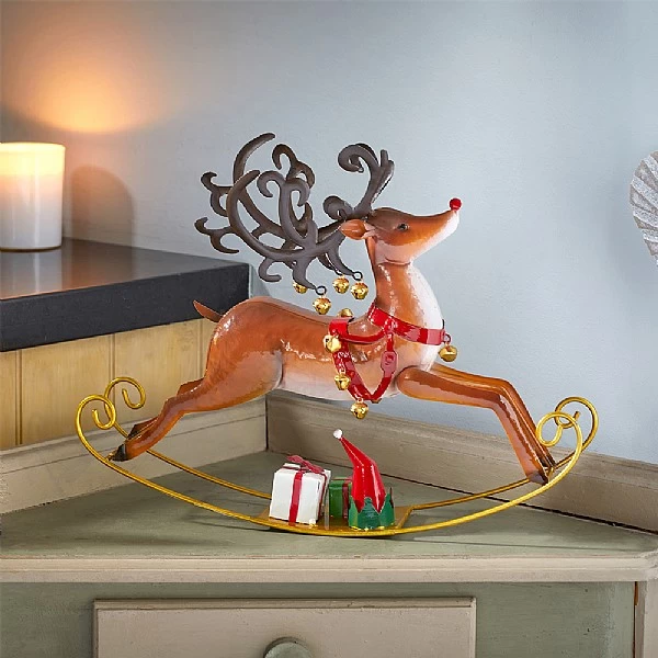 Why We Love It:Let this handsome Rudolph the Red-Nosed Reindeer bring some extra jingle to your homeFeatures jingle bell detailing on the antlers and reinsSits on a fun rocker base to add movementBeautiful glossy hand-painted finishSuitable for indoor and outdoor use