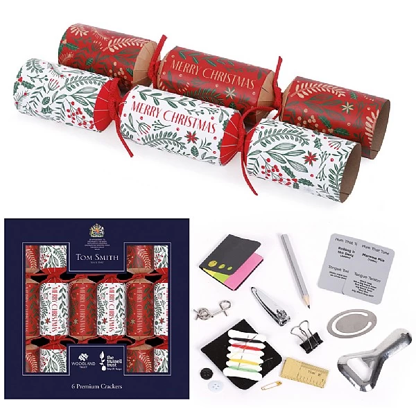 Why We Love It:Set of 6 premium Christmas crackers in red and white with a classic winter foliage design finished with red bowsContains a hat, motto and plastic-free giftFSC-certifiedTom Smith has partnered with the Woodland Trust to actively support a sustainable futureThe manufacturer also donates money to the Trussell TrustFully recyclable packagingSince 1906, Tom Smith has held the Royal Warrant as suppliers of Christmas crackers and wrapping paper to the monarch